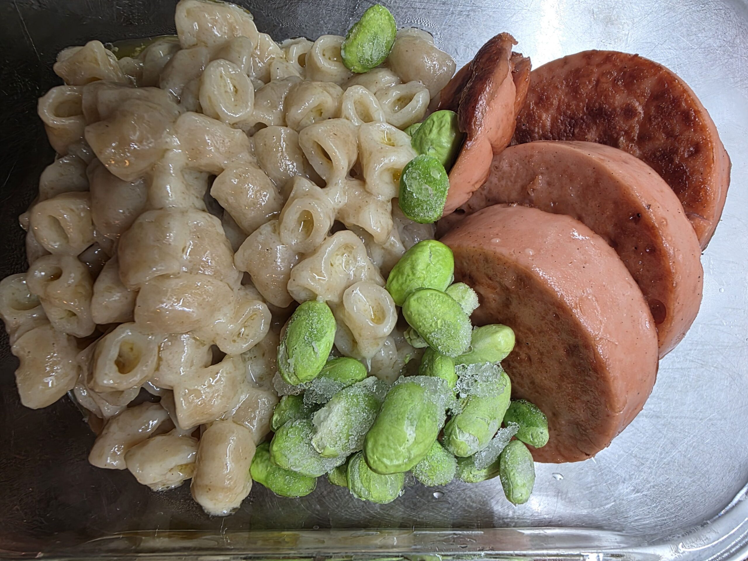 - Koka upp makaroner i 1 1/2 lit. vatten. Lägg åt sidan